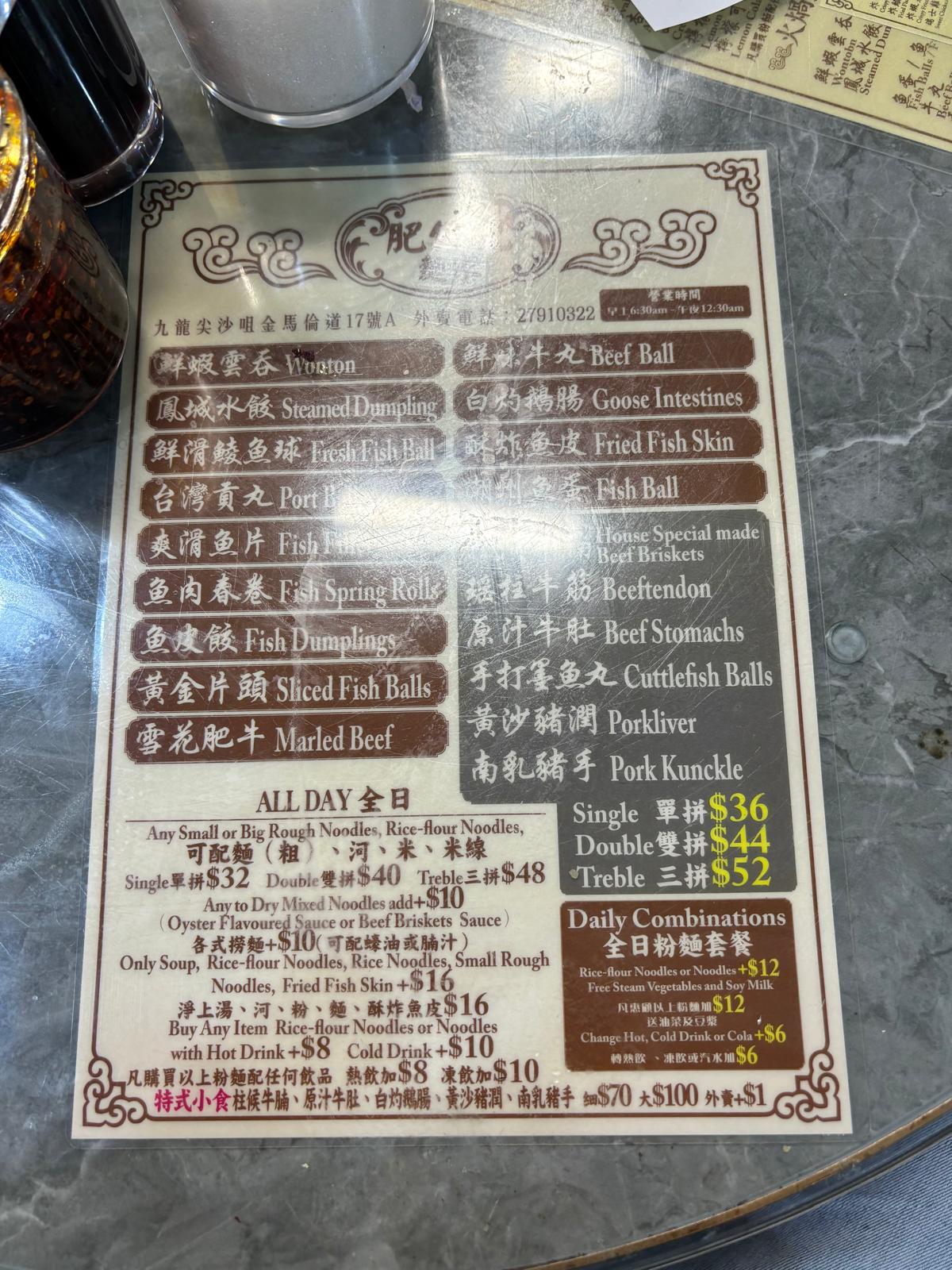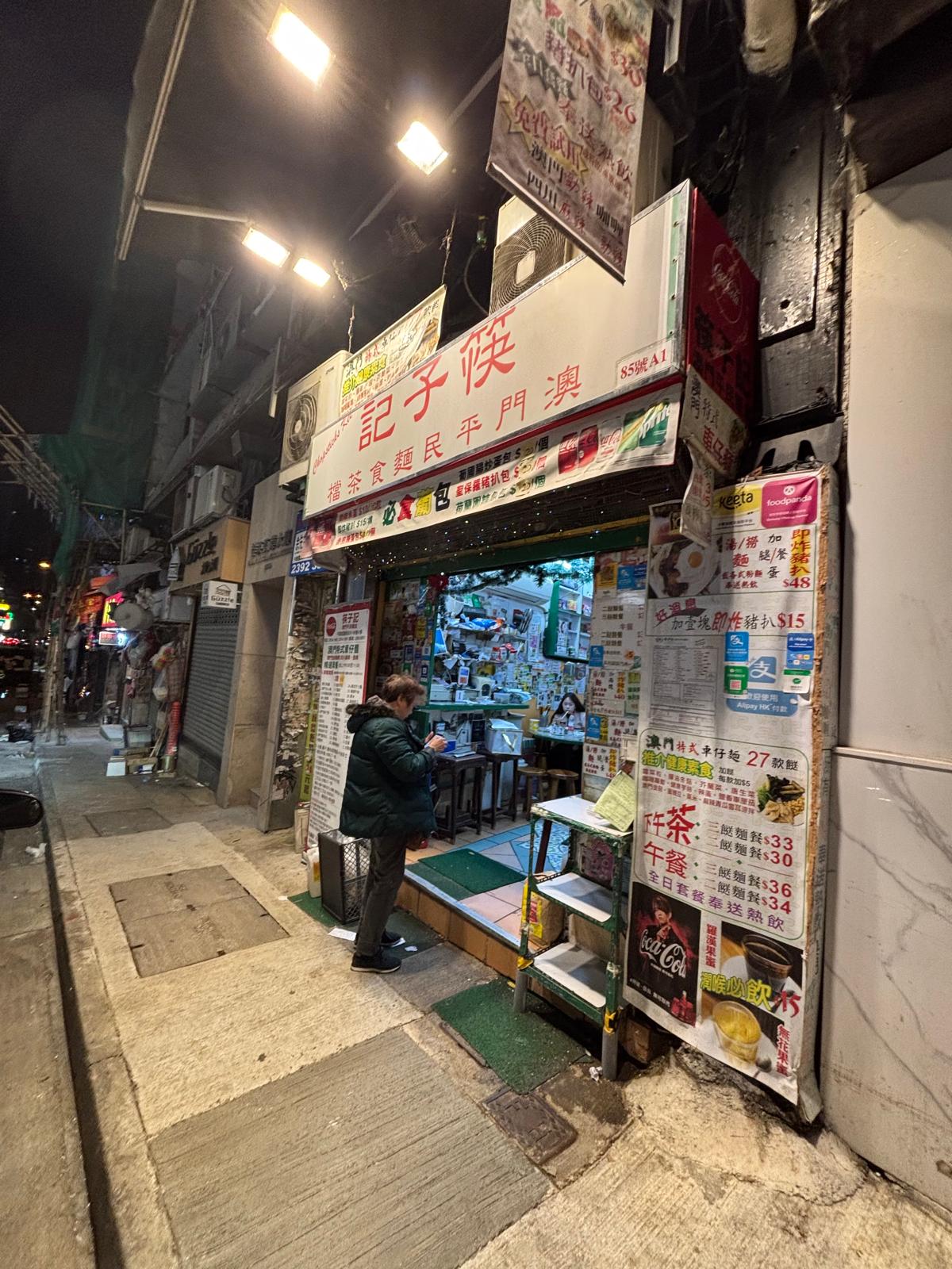 One good thing about our hostel was it's location. It's smack right in the heart of Tsim Sha Shui, accesible to many restaurants and MTR exits. We found a few food options that were still open at that point in time (11pm) and decided to settle for 肥仔記麵食 because noodles always hit at night.