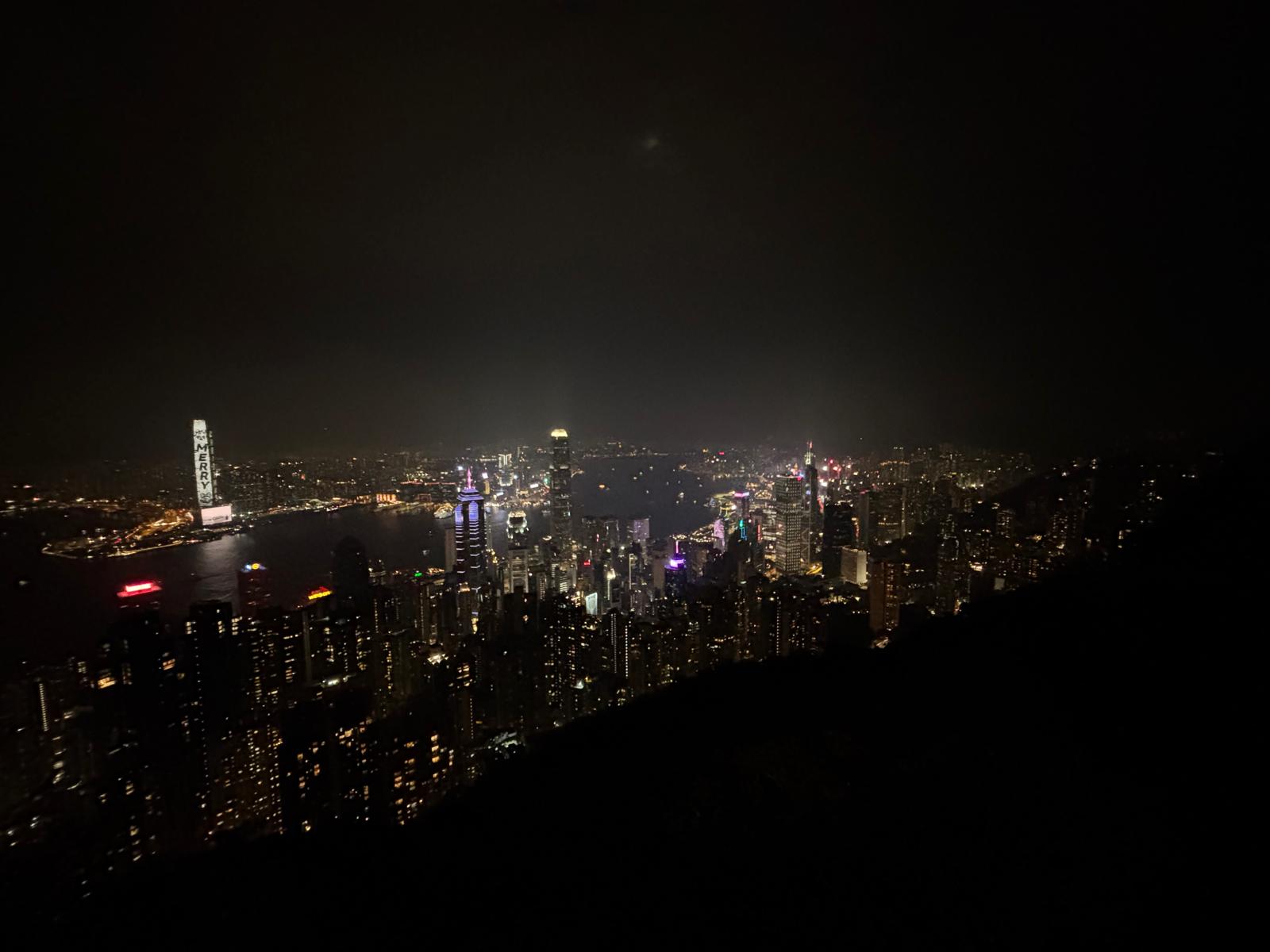 At the top, it was cold as the winds were constantly obliterating us, especially C in her tennis skirt and ankle socks 🤣. We had to hike around 20mins from The Peak along Lugard Road to get to the sightseeing spots for the night view of the city skyline. It was truly a view to behold. We also saw some brave sightseers crawling over the safety rails to get to a dangerous rock spot for photos where your legs were hanging in mid-air. Too dangerous for us though.